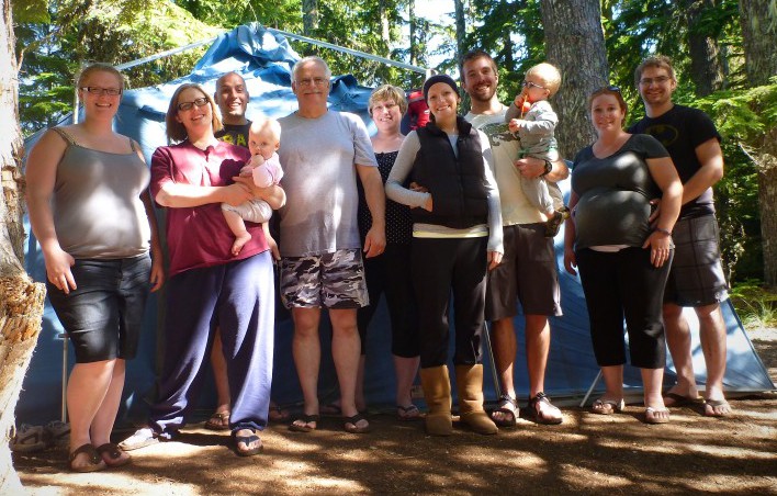 The last time we and all of our kids and their families were camping together the big blue tent was there in all its un-camouflaged glory. Bright blue is bright blue. Its presence is strikingly obvious no matter where it’s pitched. While we were camping we were discussing what we could get my dad for his birthday. Someone came up with the idea to have a picture taken with all of us standing in front of the big blue tent. We all thought it was a great idea and did so.